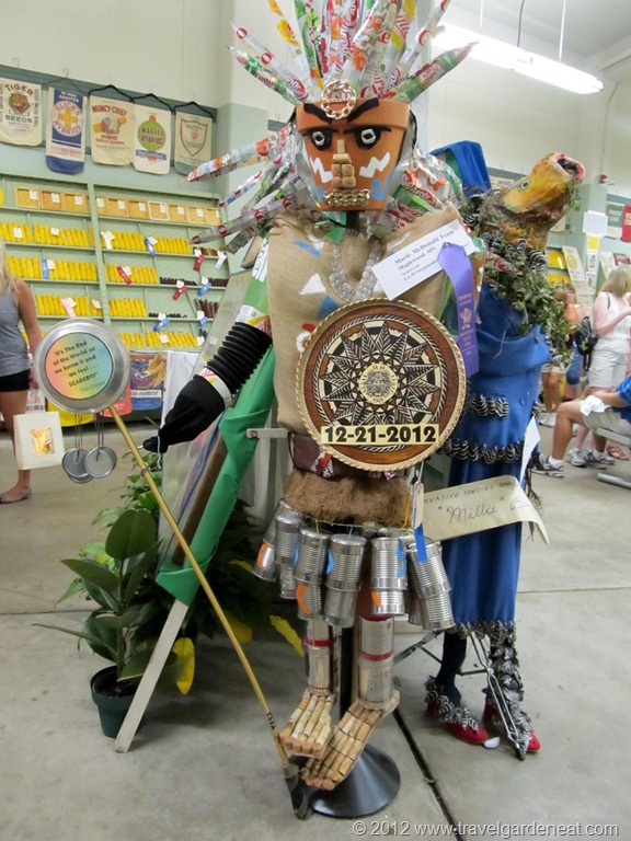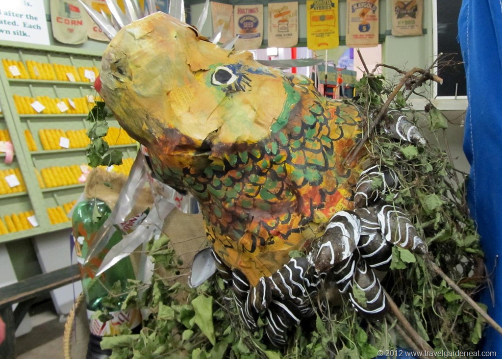 After the animal barns, time to visit the Agriculture and Horticulture Buildings, walking past an eye-catching pond garden by the Minnesota Water Garden Society. In the Ag-Hort Building, Crop Art is one of our favorite creative exhibits. Categories include wearable crop art, although comfort did not appear to be a relevant factor in the design!