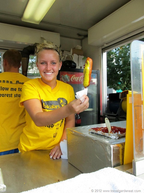 The crepes from the French Creperie have become one of our return-to favorites, as well – freshly-made crepes, still warm and wrapped around your choice of fillings. The strawberries with whipped cream were refreshing after deep-fried veggie fries and cheese curds. Note the posted instructions regarding how to properly eat a crepe, the last one most important of all: “Ask yourself if you can have another one!”
