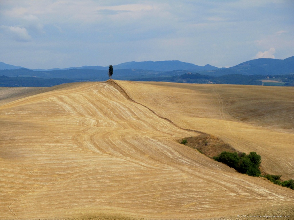 This lone cypress tree compelled me to find a spot to stop the car and pull out the camera as we drove through the Val d’Orcia region of Tuscany last summer. A couple of other trees, just skeletal trunks and branches nearby, may have once kept it company, but now only the solitary cypress remains in this classic Tuscan landscape. There was something magically compelling about this scene, as if the tree had a story to tell. But, perhaps it is just another example of that magic of Tuscany itself.