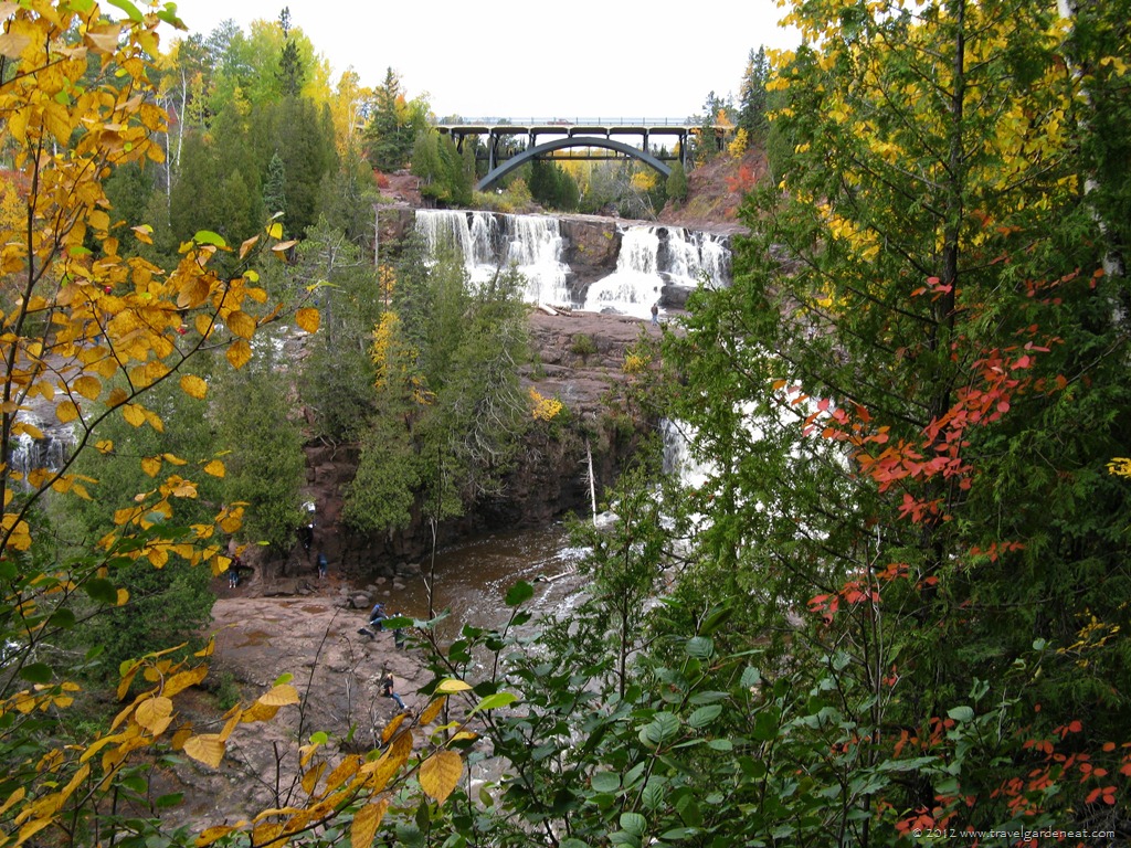 Gooseberry Falls is one of Minnesota’s iconic State Parks. We have hiked the well-worn trail along the edges of the Falls and Gooseberry River countless times; it never gets old. This classic view (below), however, is one we left behind for one of our two geocaching hikes last weekend. Instead, we followed the Fifth Falls Trail inland, in pursuit of one of the Avian Adventure geocaches (so that we could end the weekend with only 80 left to check off the list before June of 2014 — as you may recall, the other geocaching hike of the weekend was the lovely Tettegouche Lake Overlook Trail).