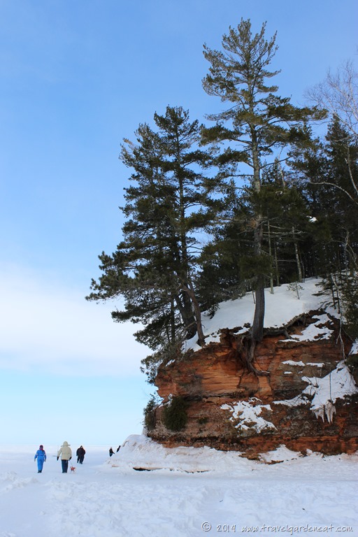 Moods were lifted and everyone I encountered today had a smile on their face — amazing what a little sunshine and warmer temperatures can do to the collective spirit of a community! The snow and ice are likely to be part of our landscape in the weeks to come … what was created over several months’ time is unlikely to disappear overnight. So, I do not think it unseasonal to post one more set of photos from our frigid hike last Saturday at the Apostle Islands National Lakeshore.