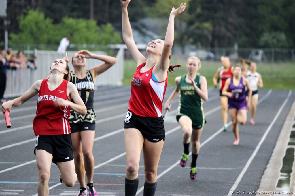 Congratulations to all the runners (as well as the race officials, coaches, and spectators!) at yesterday’s meet, which turned into a 9 1/2 hour marathon full of weather delays, stops and starts.  It was quite a day.  Every race has a story to tell.