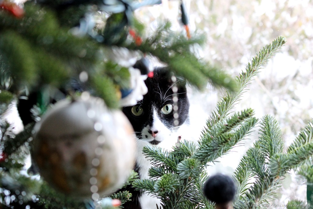 It is Christmas Eve. We have a beautiful live Christmas tree in our living room, a tall Fraser fir … with nothing more than star at the top and lights this year. With cats in the house, we’ve always been careful to put the breakable ornaments near the top, out of reach of playful paws.