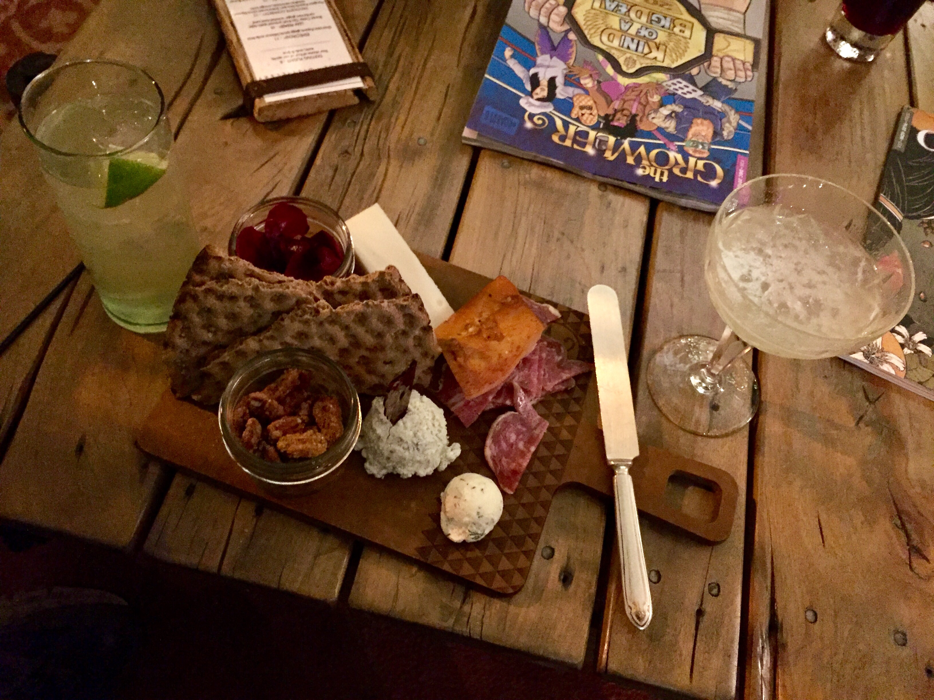 After some holiday shopping, how do you spell R-E-L-A-X?  A little cheese and charcuterie …. with a side of hand-crafted cocktails from Vikre, Duluth’s local distillery (Juniper Gin and Tonic on the left, and Spruce Gin Gimlet on the right).