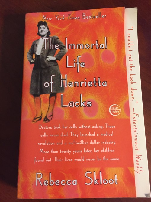 We periodically take advantage of local community “One Book” programs, which often include a talk by the author or activities related to the subject of the book. One of the first books we read as a newly formed book club was our community’s “One Book”: The Immortal Life of Henrietta Lacks by Rebecca Skloot.
