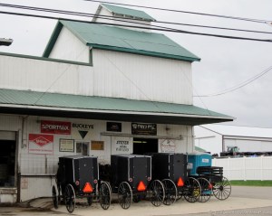 Buggies at the seed store in Mt. Hope, Ohio