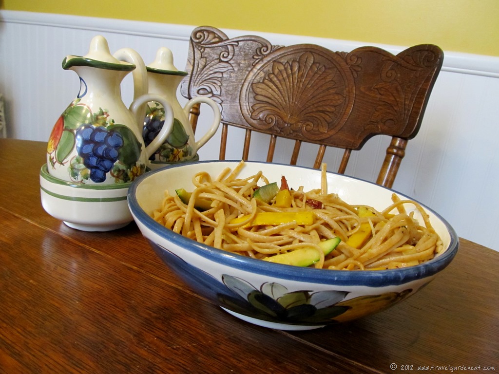 Started the blog in August — from one of my early posts, Spaghettini with Summer Squash and Crispy Speck (August)